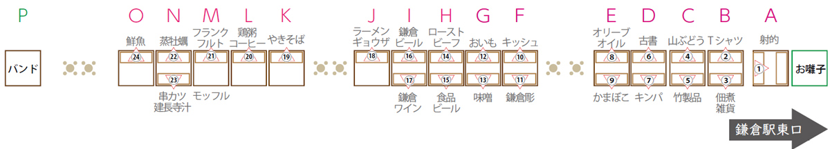 鎌倉表参道商店会が中心となり、鎌倉駅東口の道路にテントが並び、24店舗が出店。