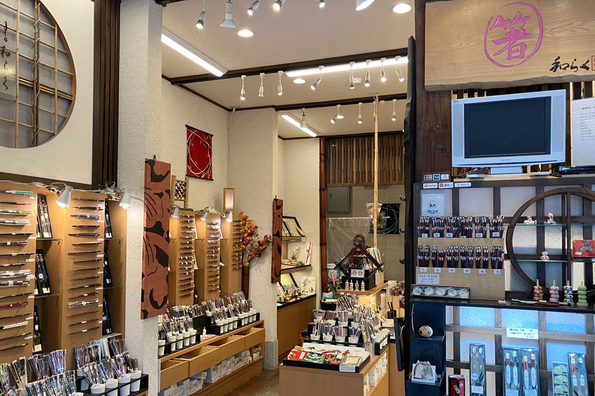 店内には、普段使いから手軽なお土産まで“箸に関わるもの”が所狭しと並んでいます。若宮大路に面している、立ち寄りやすいお店です。名入れが無料なので、大切な人へのギフトにも!