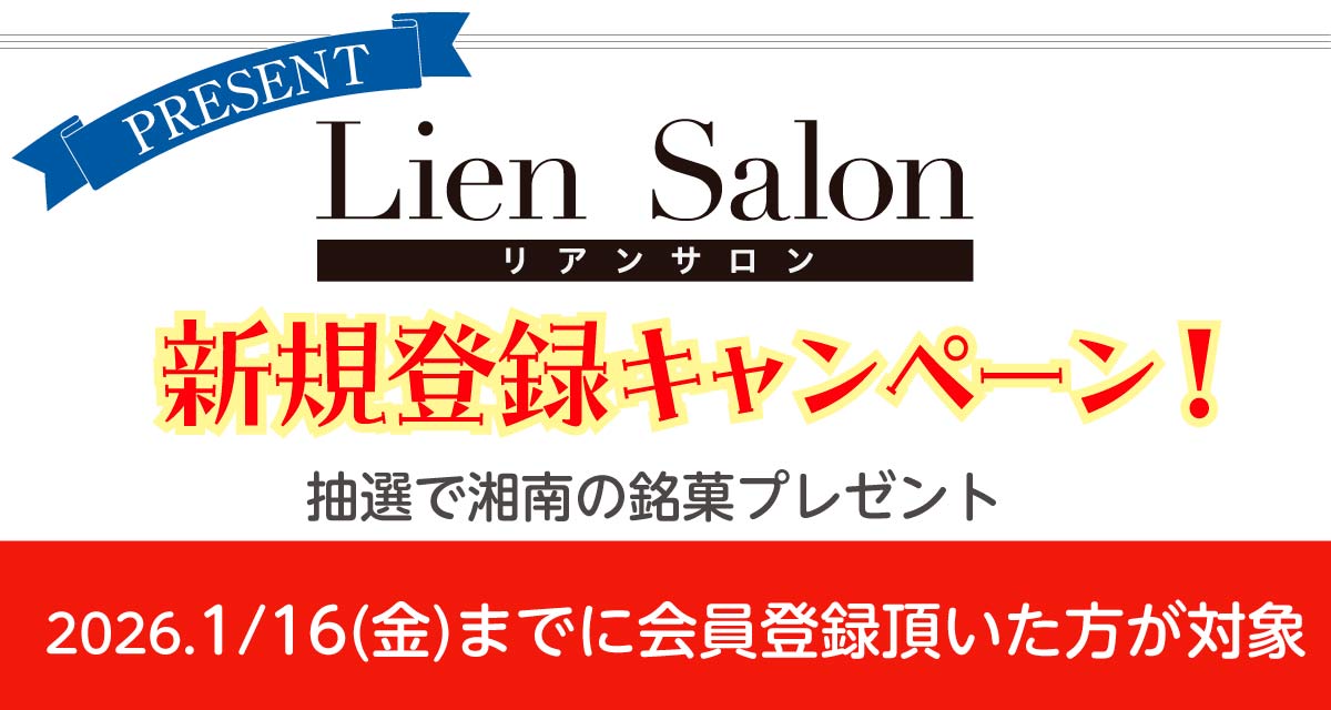 >>>Lien Salon 新規登録者に湘南銘菓プレゼント・1/16(金)まで